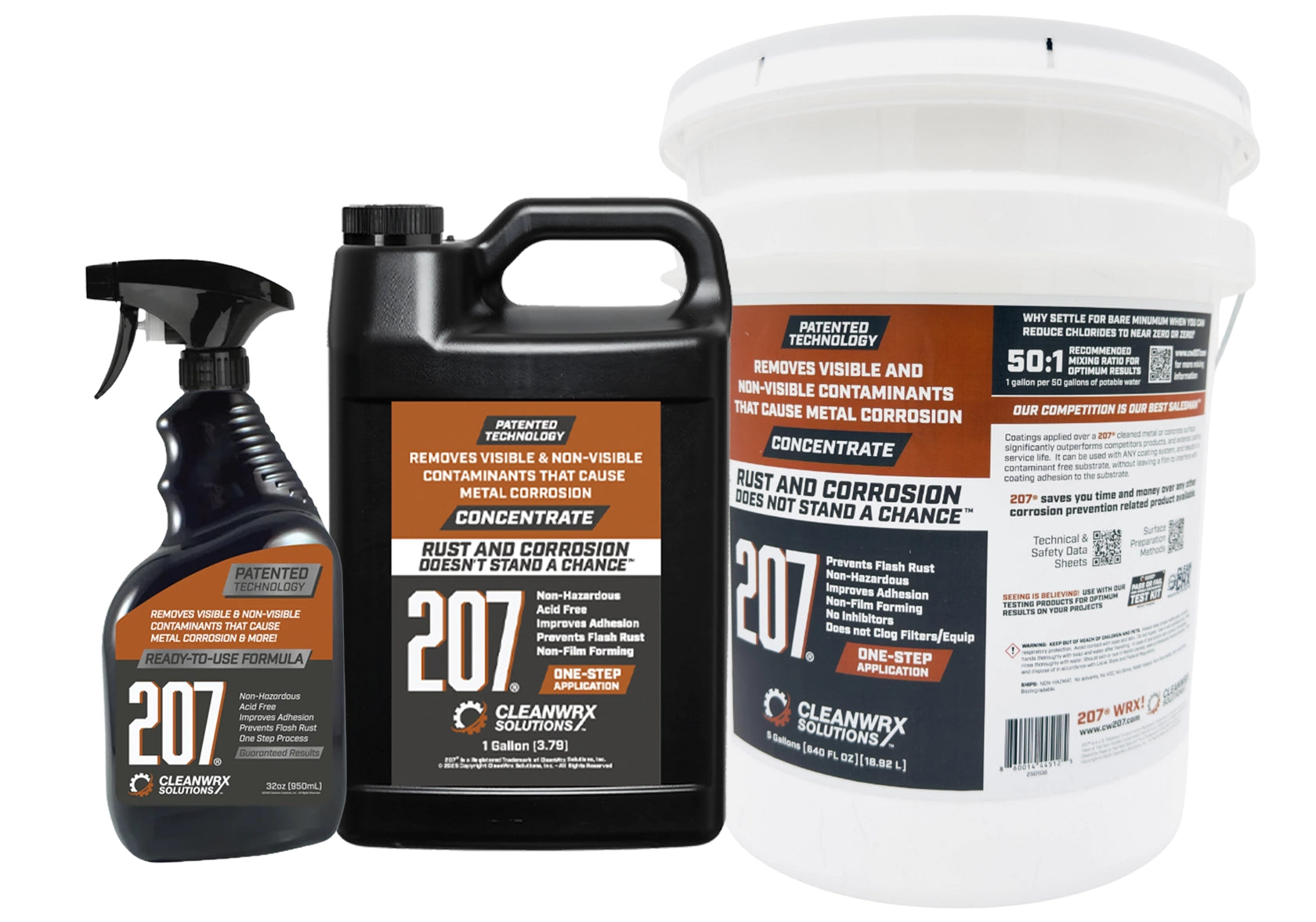 With the formation of an Amorphous Oxide Layer by our Patented 207®, you will not have any immediate flash rust forming prior to the application of a protective coating. 207® will typically maintain a visual standard from three days or longer depending on immediate environmental conditions.