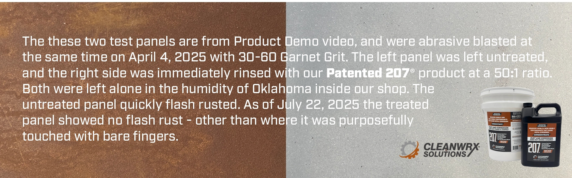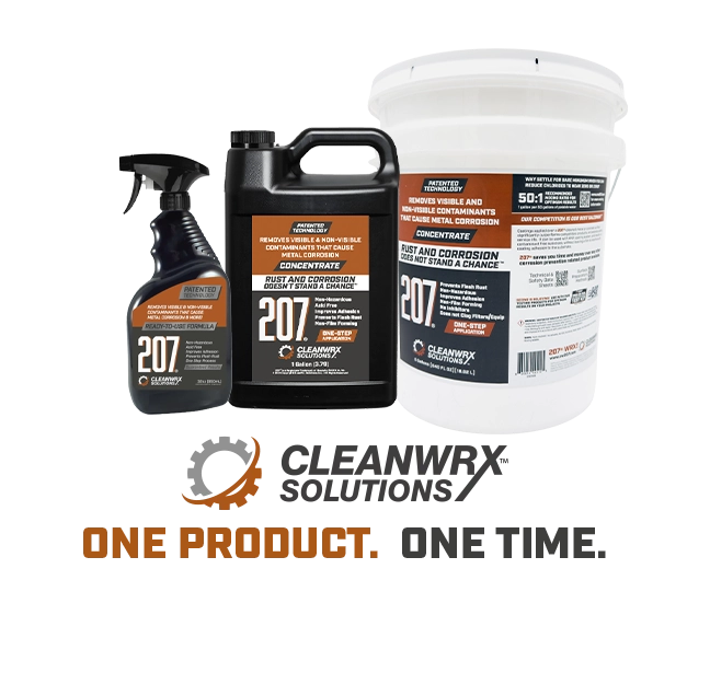 Once cleaned surfaces should be coated to avoid contamination of the newly cleaned surface. Surfaces that have been cleaned utilizing 207® will typically resist flash rusting for a period of 72 or more hours, however, it is prudent to coat surfaces as quickly as possible after cleaning.